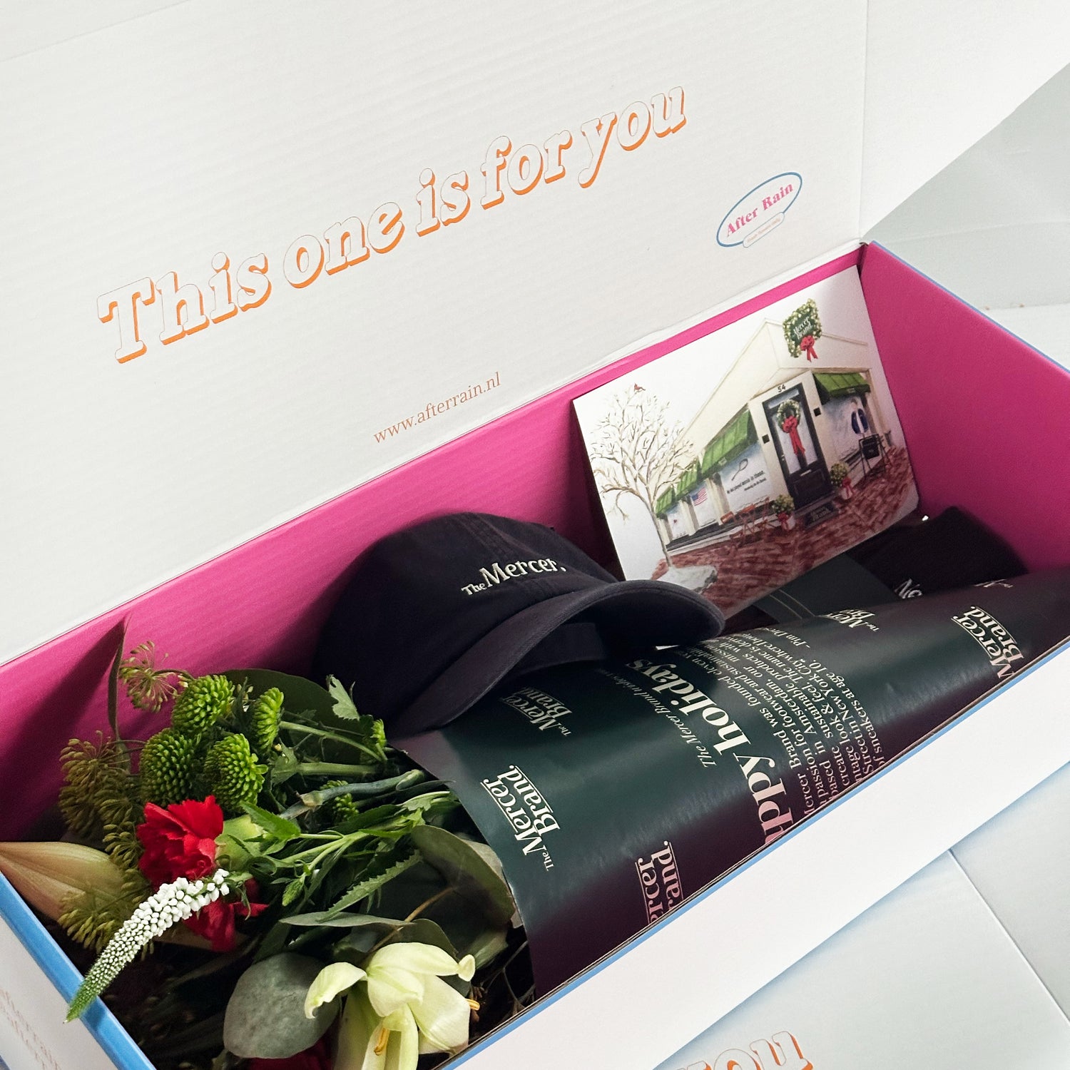 In collaboration with Mercer Amsterdam, we created this costume PR package. To capture the holiday spirit, we designed a stunning floral arrangement in red, white, and green.