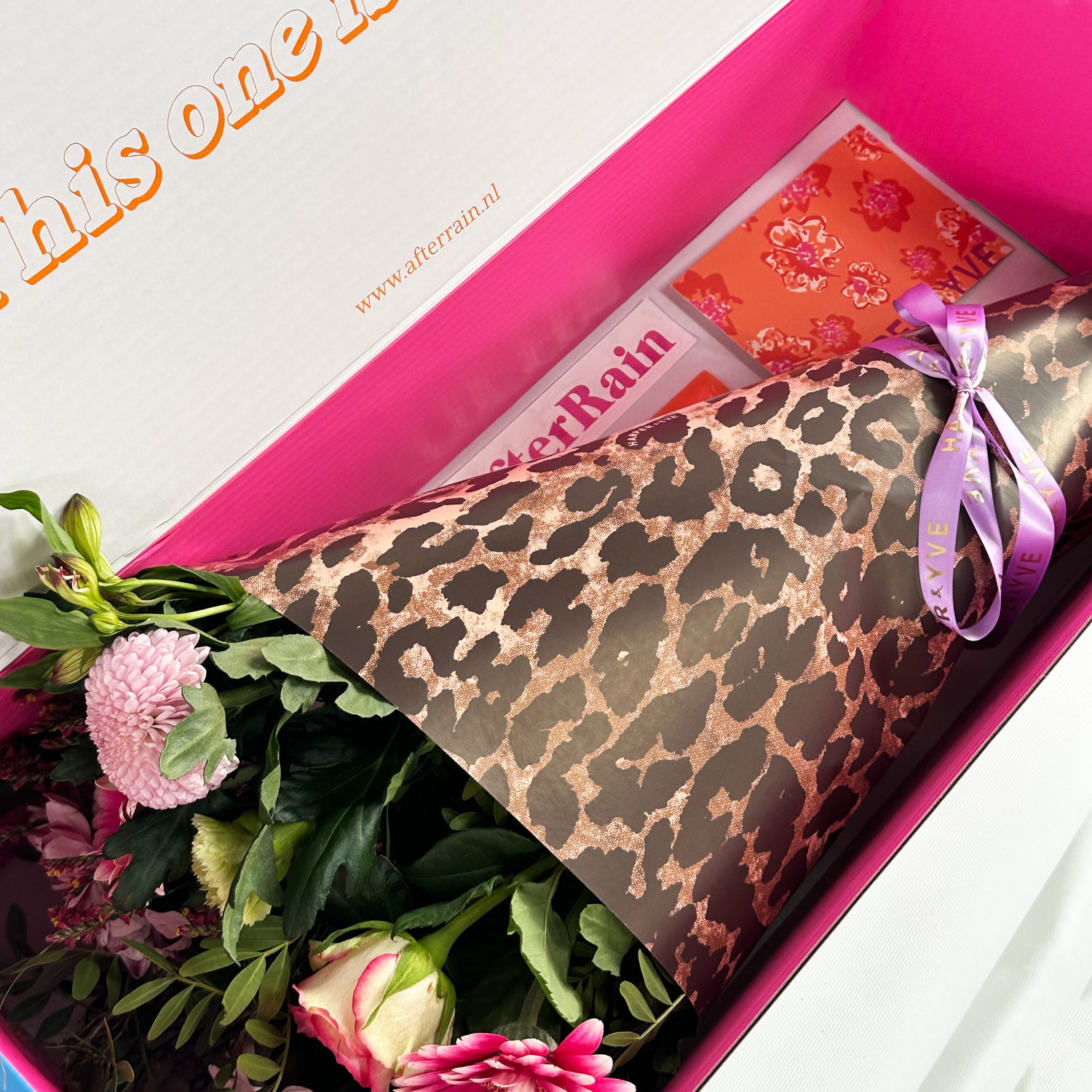 To celebrate Mother's Day, Harper & Yve surprised Dutch influencers with a personalised After Rain bouquet in eye-catching leopard wrapping paper. Giving these creators a stand-out gift.