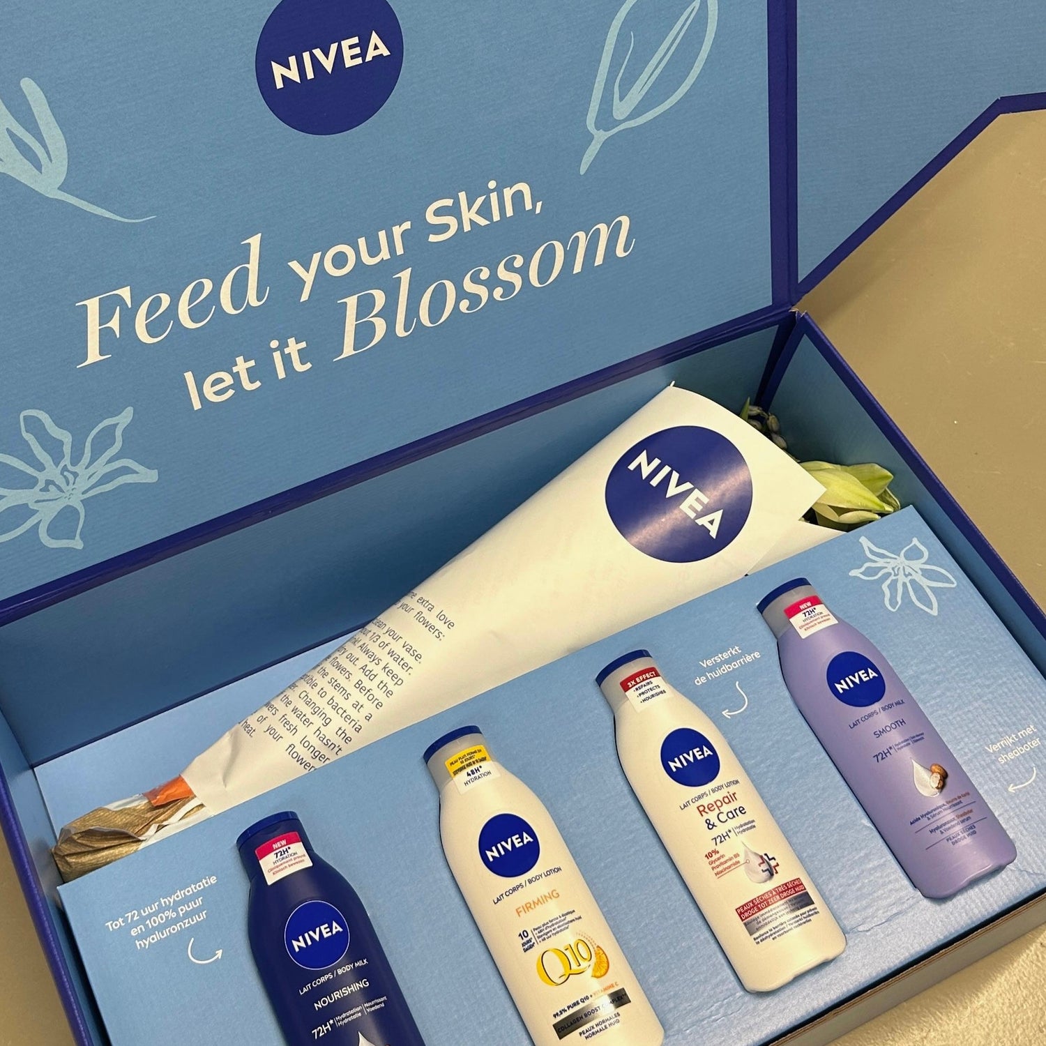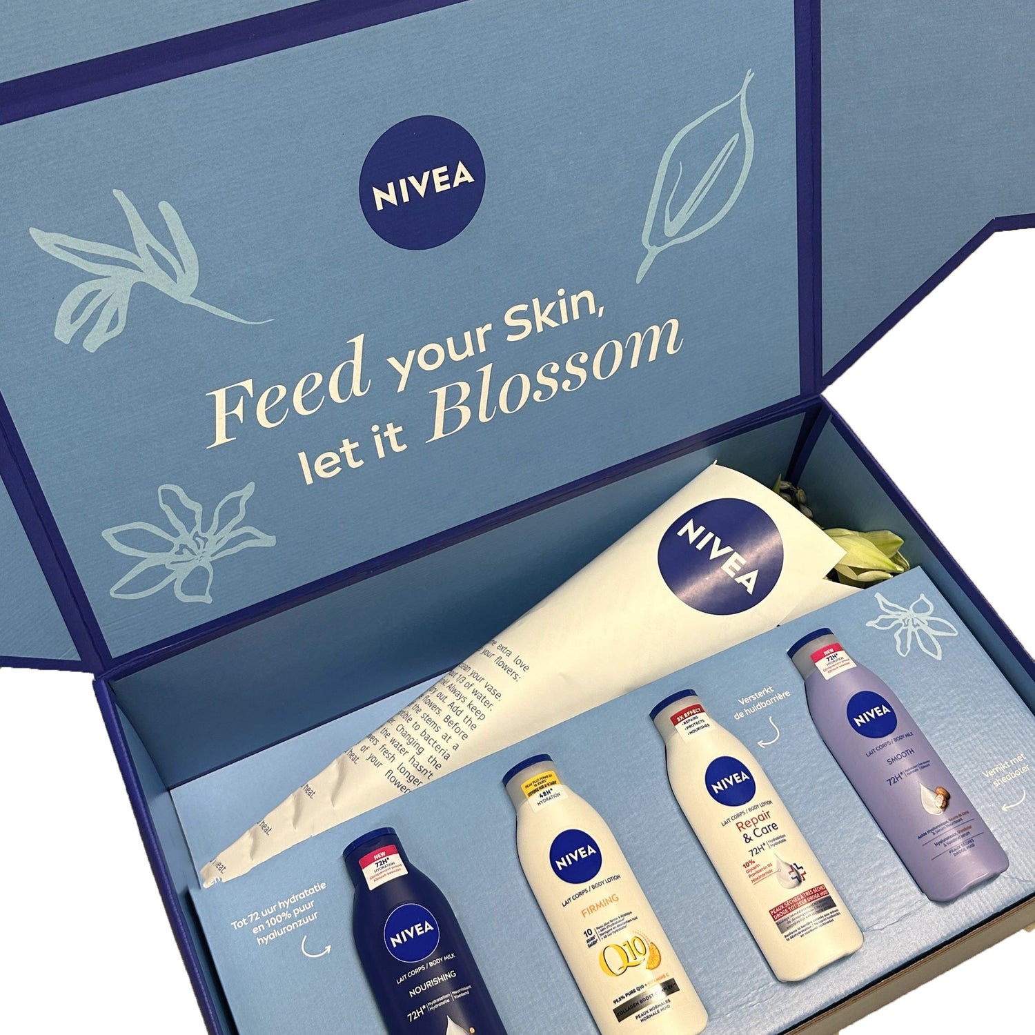 In collaboration with Nivea, we designed this customized PR package, inspired by the fresh and soothing essence of the brand. The floral arrangement features a serene blend of blue and white blooms.